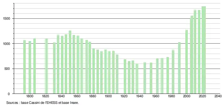 - ↑ Fiches Insee - Populations de référence de la commune pour les années 2006, 2007, 2008, 2009, 2010, 2011, 2012, 2013, 2014, 2015, 2016, 2017, 2018, 2019, 2020, 2021 et 2022.