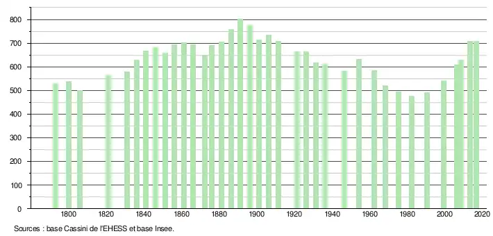 - ↑ Fiches Insee - Populations de référence de la commune pour les années 2006, 2007, 2008, 2009, 2010, 2011, 2012, 2013, 2014, 2015 et 2016.