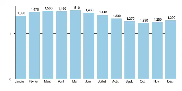 Le module de la rivière à Caudebec-en-Caux est de 1,38 m3/s.