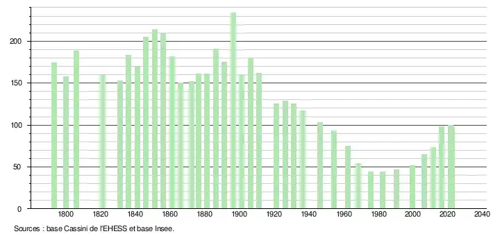 - ↑ Fiches Insee - Populations de référence de la commune pour les années 2006, 2007, 2008, 2009, 2010, 2011, 2012, 2013, 2014, 2015, 2016, 2017, 2018, 2019, 2020, 2021 et 2022.
