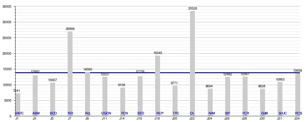 Total de 235869 spectateurs en 17 journées (soit 13.874 /match)