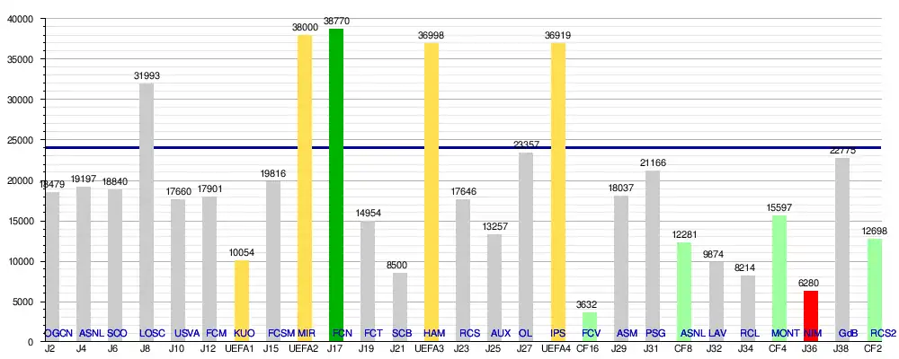515 895 spectateurs ont assisté à une rencontre au stade cette saison, soit une moyenne de 19 107 par match.