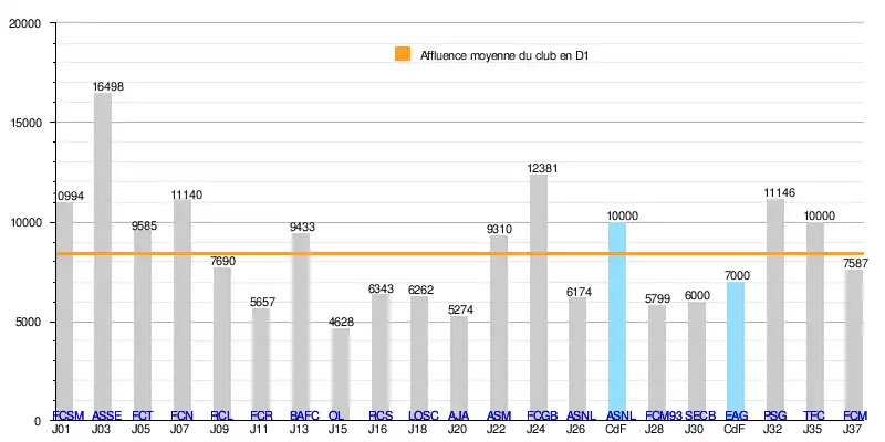 - de 159.923 spectateurs en 19 rencontres de Division 1, soit une moyenne de 8.417/match,