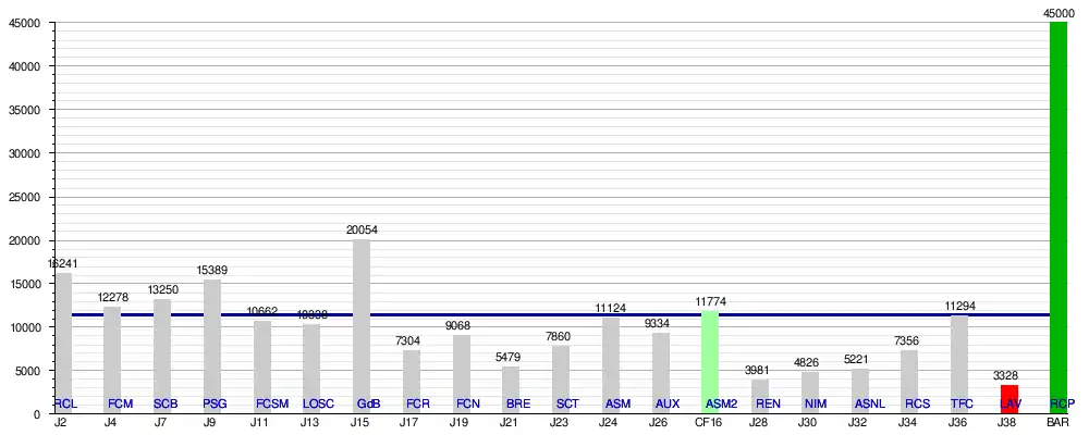 Sans le match de barrages qui a attiré 45 000spectateurs, la moyenne chute à 9 808