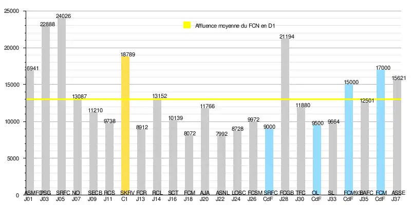 - de 247 483 spectateurs en 19 rencontres de Division 1, soit une moyenne de 13 025/match.