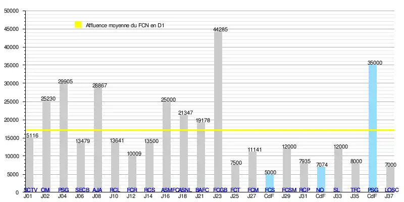 - de 325 133 spectateurs en 19 rencontres de Division 1, soit une moyenne de 17 112/match.