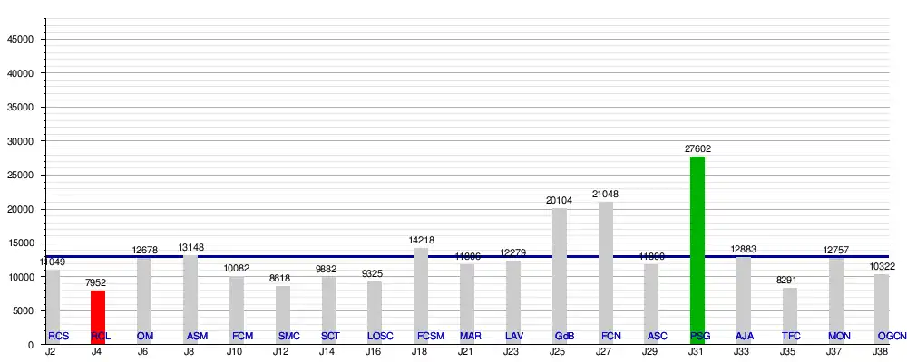 245 944 spectateurs ont assisté à une rencontre au stade cette saison, soit une moyenne de 12 944 par match.