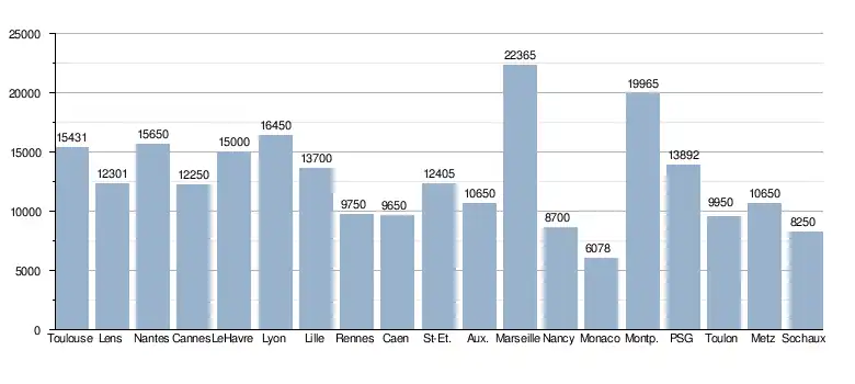 - ↑ « Affluences spectateurs championnat de France 1991-1992 », sur stades-spectateurs.com (consulté le )