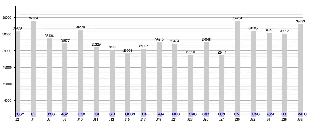 Malgré une saison stressante et compliquée niveau comptable, le public a toujours bien présent à Geoffroy-Guichard. En témoigne l’assistance qui a dépassé à 8 reprises (sur 19) les 30 000 personnes au stade.