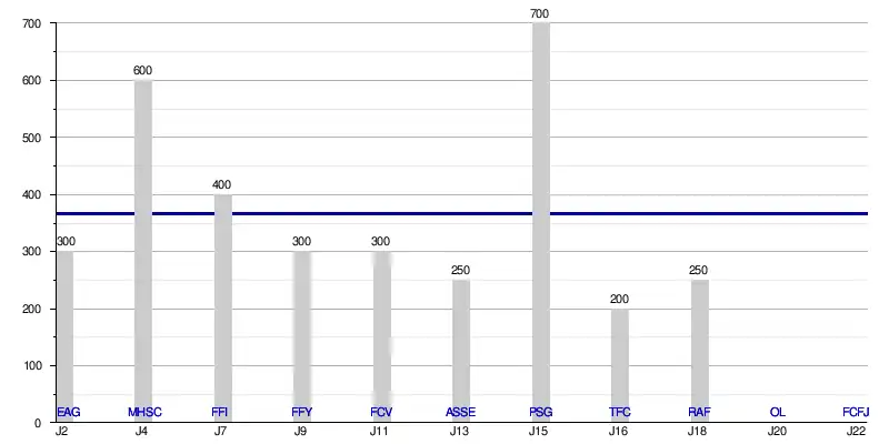 Légende : ( ) = écart en point sur le premier ou, si l'AFCF est premier, sur le deuxième.