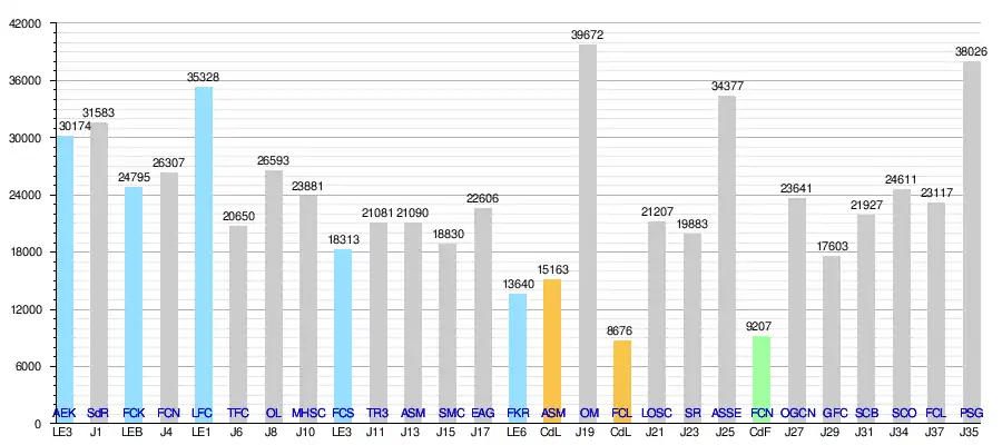 | 4 | Girondins de Bordeaux - AS Saint-Etienne | Ligue 1 - J25 | 07/02/2016 | 34 377 |