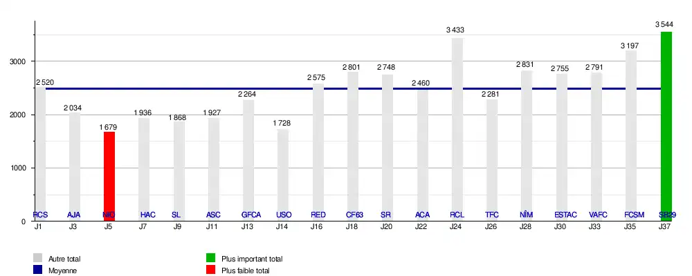 - Plus petit nombre de spectateurs à domicile : 1 679 (FBBP 2-2 Chamois Niortais, )[13]