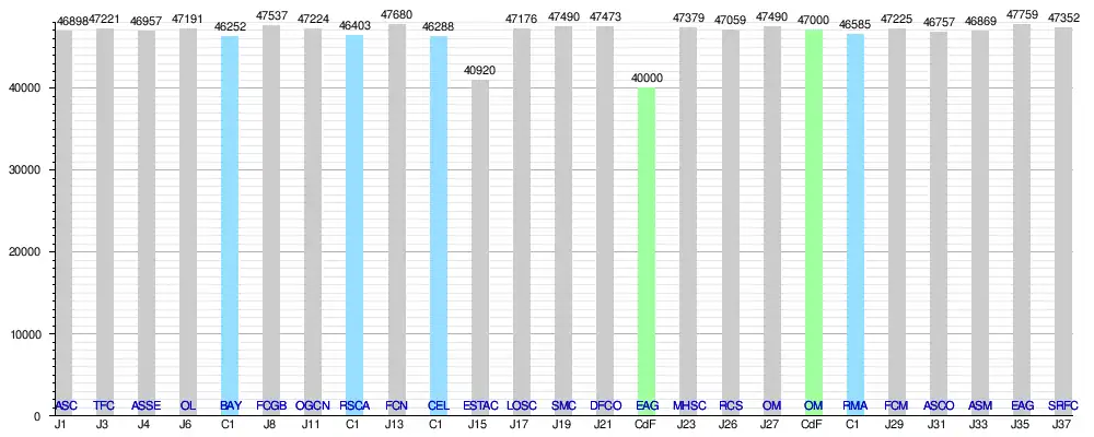 | Ligue 1 | - | Vainqueur | 38 | 29 | 6 | 3 | 108 | 29 | +79 |