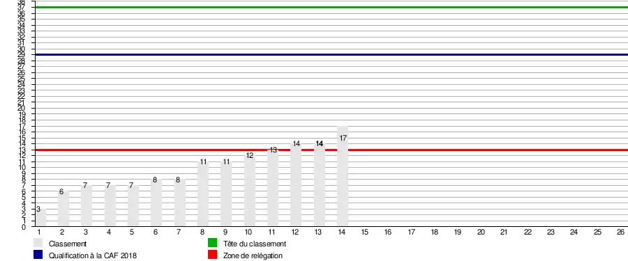 Ce graphique représente le classement de l'équipe par journée.