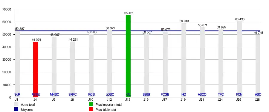 - ↑ « Affluences par journée, par club, taux de remplissage », sur lfp.fr (consulté le ).