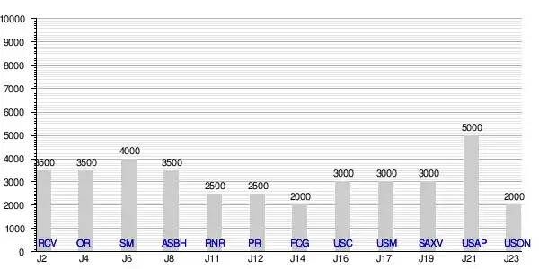 37 500 entrées ayant été enregistrées pour les 12 rencontres de championnat du Biarritz olympique au Parc des Sports d'Aguiléra, l'affluence moyenne du club à domicile est de 3 125 spectateurs, soit un taux de remplissage de 23 %.