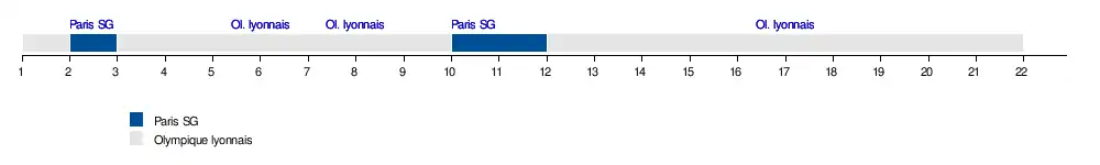| Légende : ( ) = écart en point sur le premier ou,si l'OL est premier, sur le deuxième. |