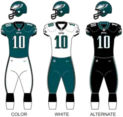 | 1 | 19h30 | Jets de New York | P, 21 - 24 | 0 - 1 | Lincoln Financial Field | Résumé/Stats. | |