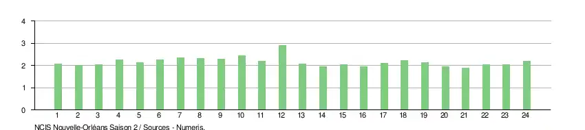 - ↑ Calcul fait en additionnant les données de chaque épisode et en divisant le tout par 23.