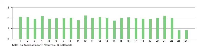 - ↑ Calcul de la moyenne fait en additionnant les données des épisodes diffusés en susbstitution simultanée (22) et en divisant le tout par 22.