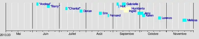 | Saison cyclonique 2013 dans l'océan Atlantique nord | |||||||||||||||||||||