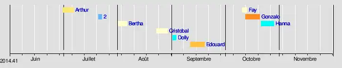 | Saison cyclonique 2014 dans l'océan Atlantique nord | |||||||||||||||||||||