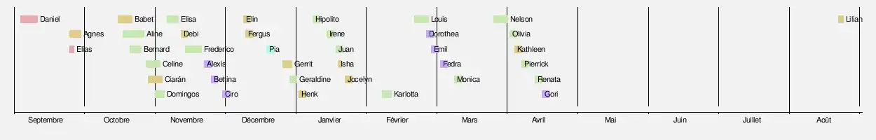 tempêtes de la saison 2022-2023 (selon le groupe « Méditerranée orientale ») :