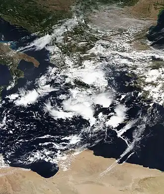 - ↑ (it) newsroom24 (@newsroom24it), « #Maltempo #AllertaMeteo Areonautica Militare, #Ciclone #Gori: burrasca e temporali in 8 regioni », sur Twitter, (consulté le ).