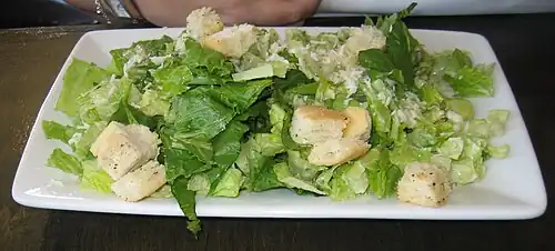 La salade César (en anglais : Caesar salad ; en espagnol : ensalada César ; en italien : Caesar salad) est une recette de cuisine de salade composée de la cuisine américaine[4] créée en 1924 par le chef cuisinier italo-américain Caesar Cardini dans son restaurant Caesar's de Tijuana au Mexique[a],[1],[2],[3], la salade César devient une des recettes populaires de la cuisine des États-Unis et de la restauration rapide, puis du monde entier[5]. Il s'agit d'une association d'ingrédients à base de salade, d'œufs, de croûtons et de morceaux de poulet[6].