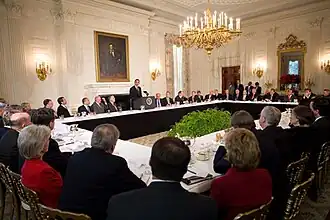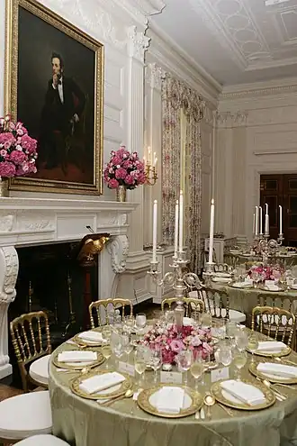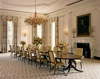 - La salle à manger d'État sur l'ancien site officiel de la Maison Blanche sous l'administration Bush.