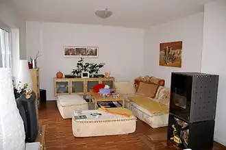 La salle de séjour, aussi appelée salon, est la pièce du logement dédiée aux divertissements de la famille (lire, regarder la télévision, écouter de la musique, etc.) et à la réception des invités. Il est alors meublé de sièges plutôt confortables (canapé, fauteuil, chaise à bascule, pouf etc.), de table basse, table gigogne, meuble-bibliothèque, bar, ou éventuellement des instruments de musique volumineux (par exemple, un piano ou un orgue). Il est aussi équipé de matériel audio-vidéo (téléviseur, magnétoscope, lecteur de DVD, Chaine Hi-Fi, console de jeux vidéo, etc.).