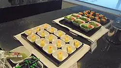 En plus d'offrir des sièges plus confortables, les salons fournissent habituellement des boissons alcoolisées et non alcoolisées gratuites, et des collations légères[1] comme des fruits, du fromage, de la soupe, des pâtisseries et de quoi petit déjeuner.[citation nécessaire]. Aux États-Unis et au Canada, presque tous les salons comportent un open bar servant bières et vins locaux et des alcools de la maison, avec des boissons haut de gamme comme de la bière importée, des liqueurs haut de gamme, des vins millésimés et du champagne disponible à l'achat[12],[13]. Dans les États américains où les open bars sont interdits par la loi, les boissons peuvent être vendus à prix cassé (par exemple, 1 $ la boisson).[citation nécessaire]