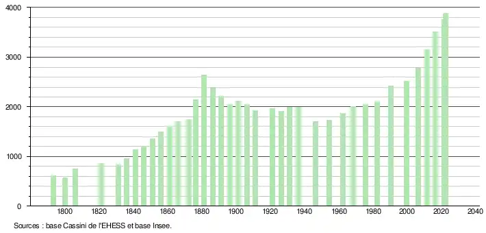 - ↑ Fiches Insee - Populations de référence de la commune pour les années 2006, 2007, 2008, 2009, 2010, 2011, 2012, 2013, 2014, 2015, 2016, 2017, 2018, 2019, 2020, 2021 et 2022.