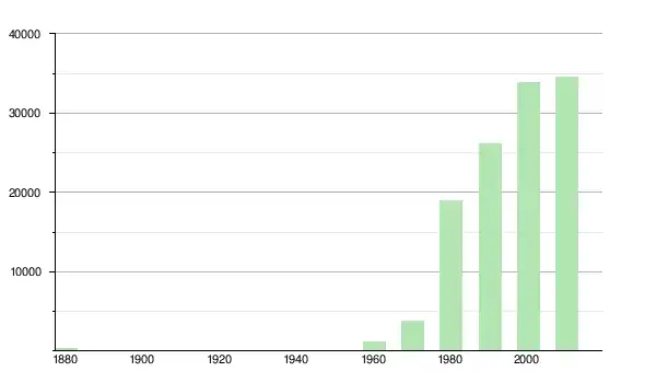 | 1980 | 18 959 | ▲ +401,43 % | |