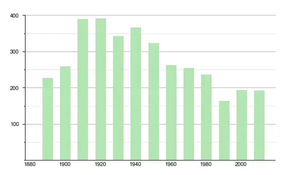 | 1950 | 324 | ▼ −11,48 % | |