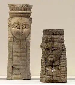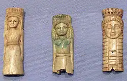 La présence d'ex-voto atteste de la popularité du culte : masques d'argile représentant des vieilles femmes ou des hoplites ainsi que des figurines de plomb en terre cuite, montrant des hommes et des femmes jouant de la flûte, la lyre ou des cymbales, ou encore montant à cheval.