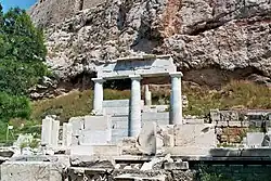 - ↑ Travlos p.91, Philostratos mentionne cette grotte sanctuaire comme le Pythion (Vita Sophistarium 2, 1, 5)