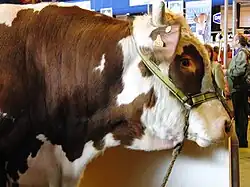Tête d'un taureau de race saosnoise au salon de l'agriculture en 2012.