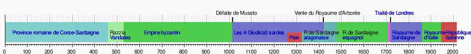Le «Regnum Sardiniæ et Corsicæ» ainsi créé le demeurera sous la domination des couronnes d'Aragon puis d'Espagne jusqu'au début de 1700[28].
