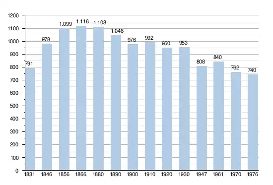 - Sources : INS, Rem. : 1831 jusqu'en 1970 = recensements, 1976 = nombre d'habitants au 31 décembre.