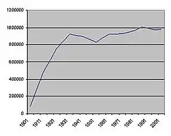 Graphique retraçant l'évolution de la population de la Saskatchewan depuis 1901.
