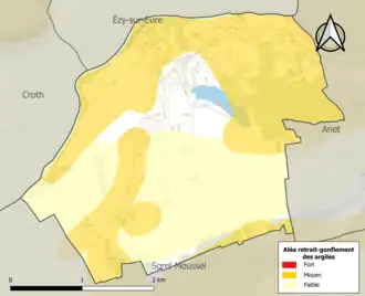 Le retrait-gonflement des sols argileux est susceptible d'engendrer des dommages importants aux bâtiments en cas d’alternance de périodes de sécheresse et de pluie. 53,3 % de la superficie communale est en aléa moyen ou fort (52,8 % au niveau départemental et 48,5 % au niveau national). Sur les 480 bâtiments dénombrés sur la commune en 2019, 277 sont en aléa moyen ou fort, soit 58 %, à comparer aux 70 % au niveau départemental et 54 % au niveau national. Une cartographie de l'exposition du territoire national au retrait gonflement des sols argileux est disponible sur le site du BRGM[15],[Carte 2].