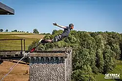 Le départ a lieu depuis le haut d'une rampe inclinée à 30° de 28 mètres, donnant de l'élan amplifiant les sensations, suivie du saut vertical lui-même de hauteur 40 mètres, au-dessus de la vallée du torrent. Les sauts peuvent s'effectuer de trois manières[11]:
