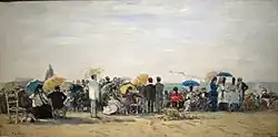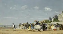 Eugène Boudin peint ses premières scènes de plage vers 1860, à l'instigation de son ami Ferdinand Martin.