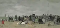 ![]() | Portrait | Personnages sur une plage à Trouville | 1869 | huile sur panneau | 29 × 47 cm | Madrid, musée Thyssen-Bornemisza | Musée |