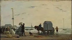 ![]() | Scène de genre | Sur la plage à Trouville | 1863 | huile sur panneau | 25,4 × 45,7 cm | New York, Metropolitan Museum of Art | Musée |