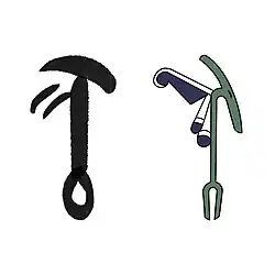 | C'est un phonogramme de valeur jȝtt dans le terme jȝtt : | « lait, crème »[2]. |