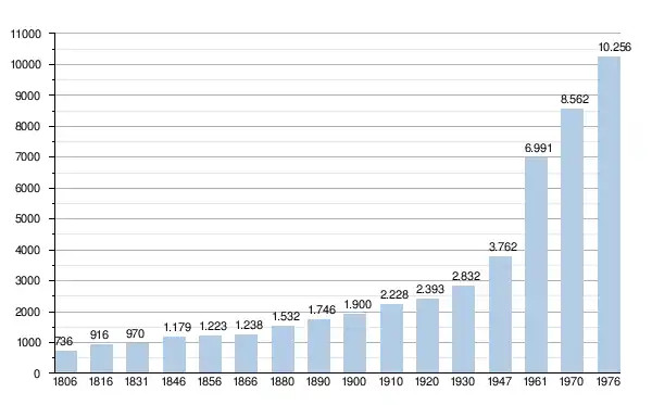 - Source : DGS - Remarque: 1806 jusqu'à 1981=recensement; depuis 1990=nombre d'habitants chaque 1er janvier[4]