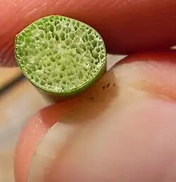 Coupe transversale d'une hampe de scirpe de chaisier, montrant l'aérenchyme cloisonné.