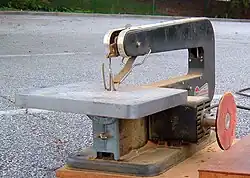Il existe des scies à chantourner électriques. La pièce à découper est déplacée, à la main, sur la table de la machine et la lame, fixée à un bras oscillant, est animée d'un mouvement de va-et-vient vertical rapide par un moteur électrique de faible puissance[1]. Certaines scies sauteuses, qui peuvent être fixées sur un support et utilisées de la même manière, portent parfois cette appellation.